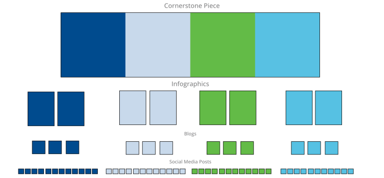 With a more organized plan, you can develop larger cornerstone content pieces in a way to slice and dice them into A LOT of content (infographics, articles, social media posts, etc.).